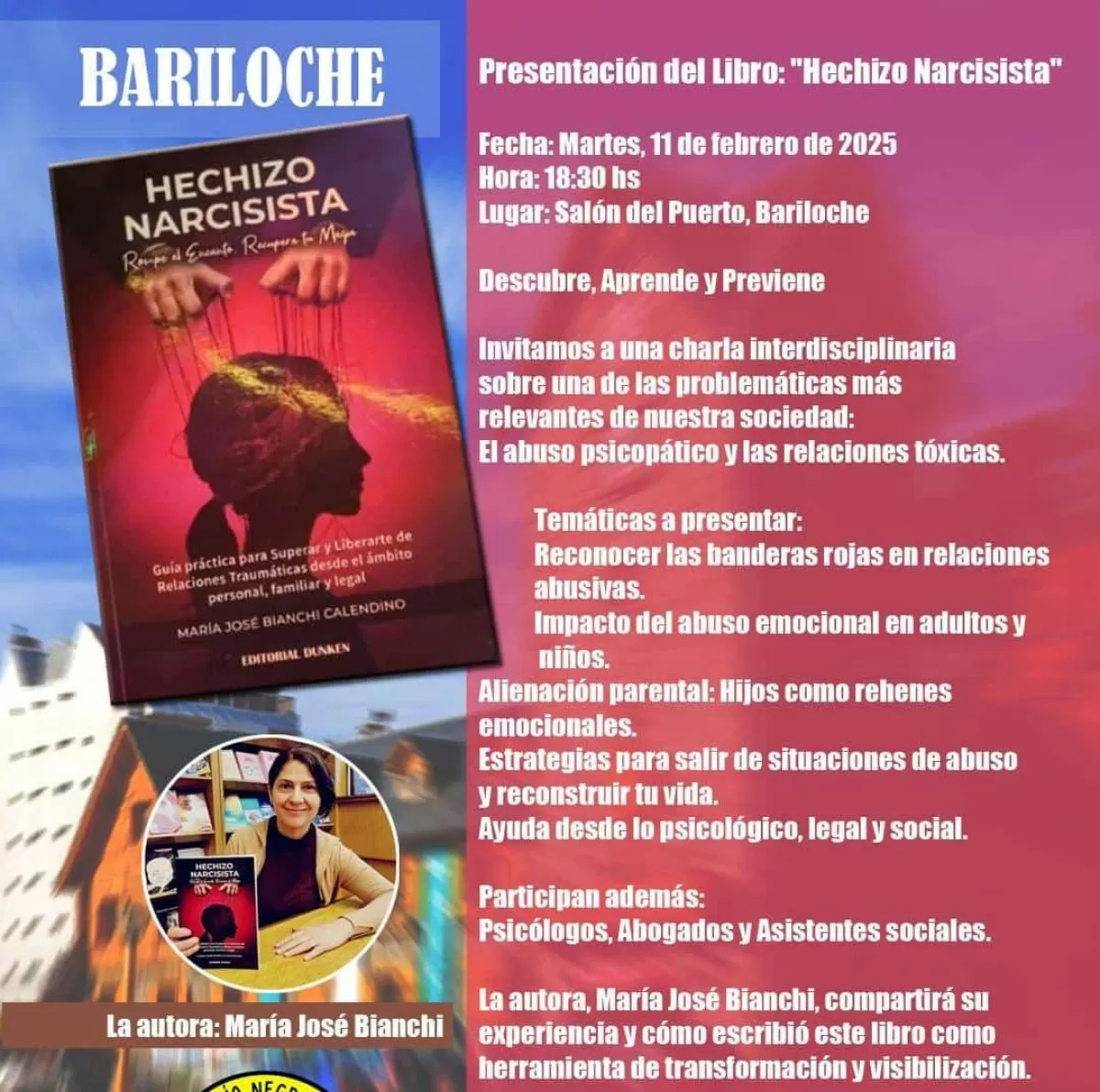 Si no pudiste asistir a la charla, te invitamos a adquirir el libro “Hechizo egoista” en tu librería más cercana. Estamos seguros de que su lectura te ayudará a comprender mejor las relaciones con egoistas y a tomar las decisiones necesarias para salir de ellas. Recuerda que mereces una relación sana y respetuosa, y que siempre hay esperanza para una vida plena y feliz. ¡No te pierdas esta lectura imprescindible!